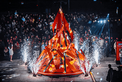 360°大型光影互动装置——流星树,总高10米,是由9个层次、7万颗灯珠组成的水晶光束。还能在手机上定制专属“星光”,璀璨的灯珠随心变换形状,绚烂多彩的光芒带你近距离感受光影的奇幻感观。